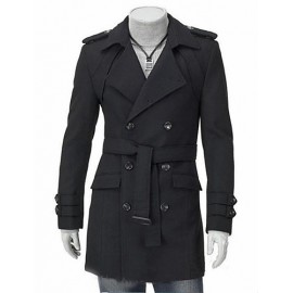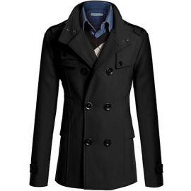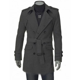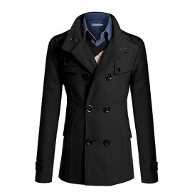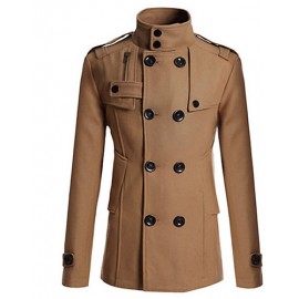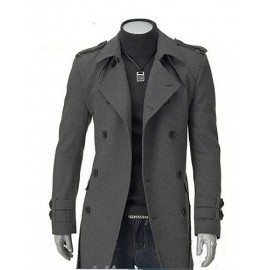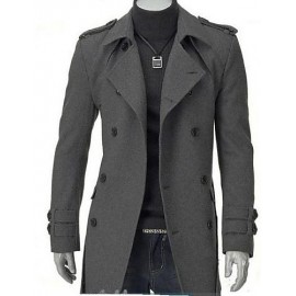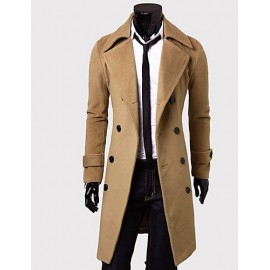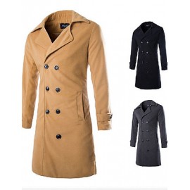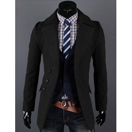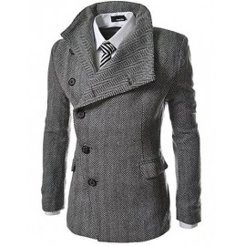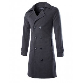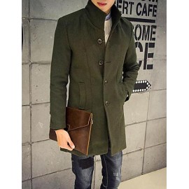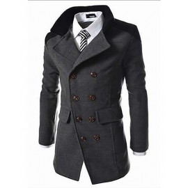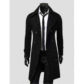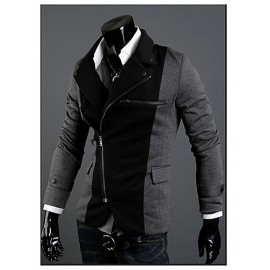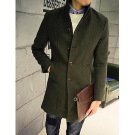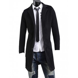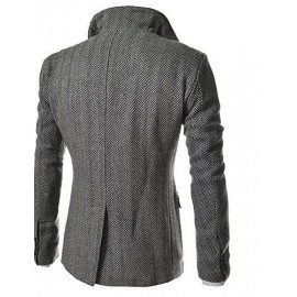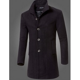 Men's Solid Casual Coat,Cotton / Tweed Long Sleeve-Black / Gray