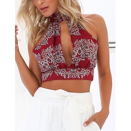 Women's Casual/Daily Street chic Summer Tank TopPrint U Neck Sleeveless Red Polyester Medium