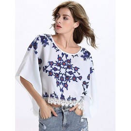 Women's Casual/Daily Street chic Color Block Fashion Sport T-shirt Print Round NeckSleeve Blue Polyester Medium